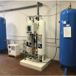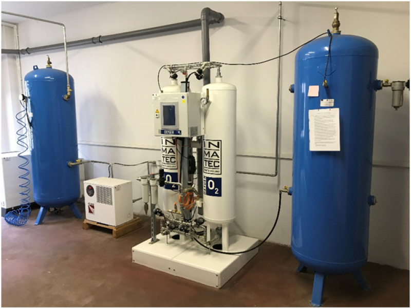 This installation is a nitrogen and oxygen generator. The stationary plants use new standards in the on-site production of nitrogen and oxygen. With N2 and O2 production directly on site, companies avoid delivery bottlenecks and support the protection of the climate and the environment with the help of environmentally friendly gas generation. The generators produce nitrogen with a purity of 95% to 99.999% (5.0) and 99.9999% (6.0) at quantities of between 0.50 and 10,000.00 Nm³/h. The oxygen generators supply oxygen with a purity of up to 95% and quantities between 0.5 and 500 Nm³/h.